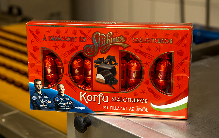 A pillanat felejthetetlen volt: a két magyar űrhajós mosolyogva fogta kezében az új Stühmer Korfu szaloncukrot, az űrcsoki karácsonyi változatát.